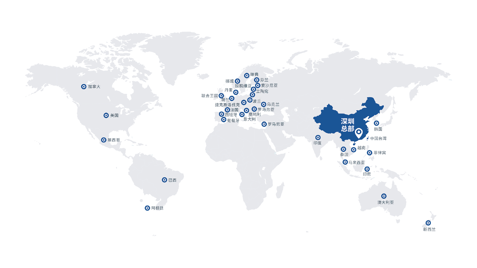 立足于國內深圳、張家港、常州、天津、長沙、蘇州、濟南生產基地與備品備件庫,國內外轄180+辦事處,在100多個國家和地區設立銷售服務機構,為全球用戶提供高品質的產品與優質高效的服務。